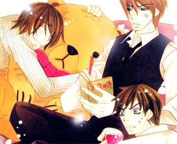 Junjou Romantica (純情ロマンチカ) is a boys' love series written and drawn by Nakamura Shungiku. The manga is published by Kadokawa Shoten and was serialized in Asuka CIEL from 2002 until 2014; it's currently under Emerald, which is the same name of the fictitious magazine of Shungiku's other series, Sekaiichi Hatsukoi. There are currently 21 published volumes, 12 of which have been released in English by the now defunct, Blu, TokyoPop's BL/Yaoi line. The manga has expanded into several drama cds, light novel series in The Ruby, as well as a 36 episode anime. The first season aired in Japan from April 10, 2008 - June 28, 2008; the second from October 12, 2008 - December 27, 2008; and the third season from July 8, 2015 - September 23, 2015.
